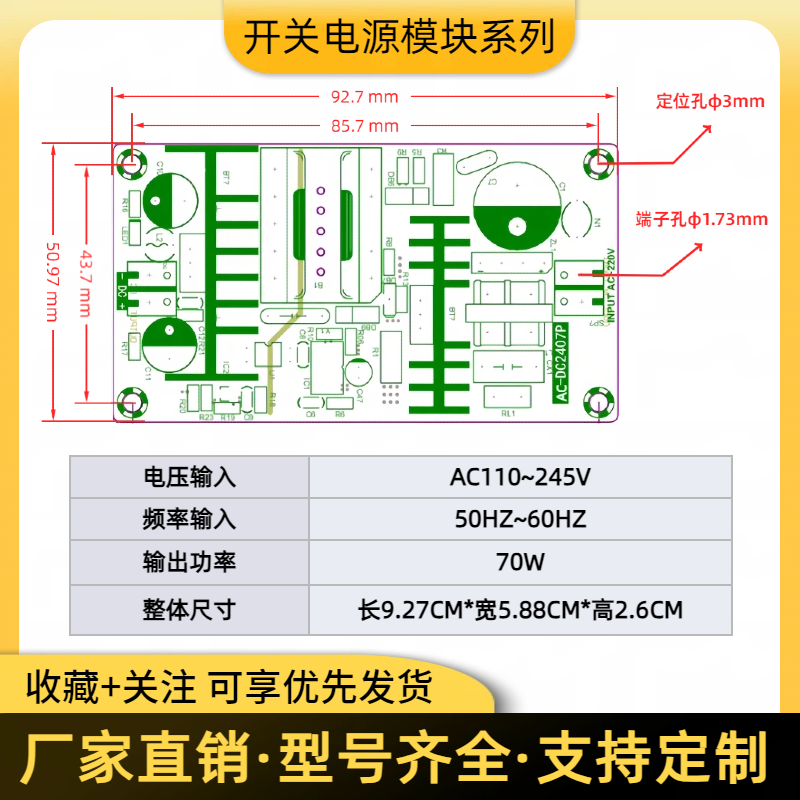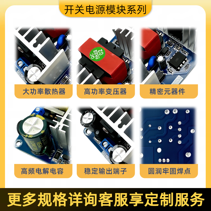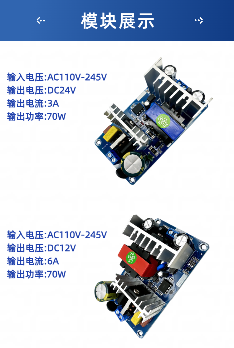 所有销售的电源模块均为市电输入宽电压模块,输出为恒压直流,非恒流输出。请务必确认好您需要的电压电流,和需要的尺寸大小,以免无法满足使用。注意大功率兼容小功率产品选用电源时请预留好余量建议负载为电源10-80%。
